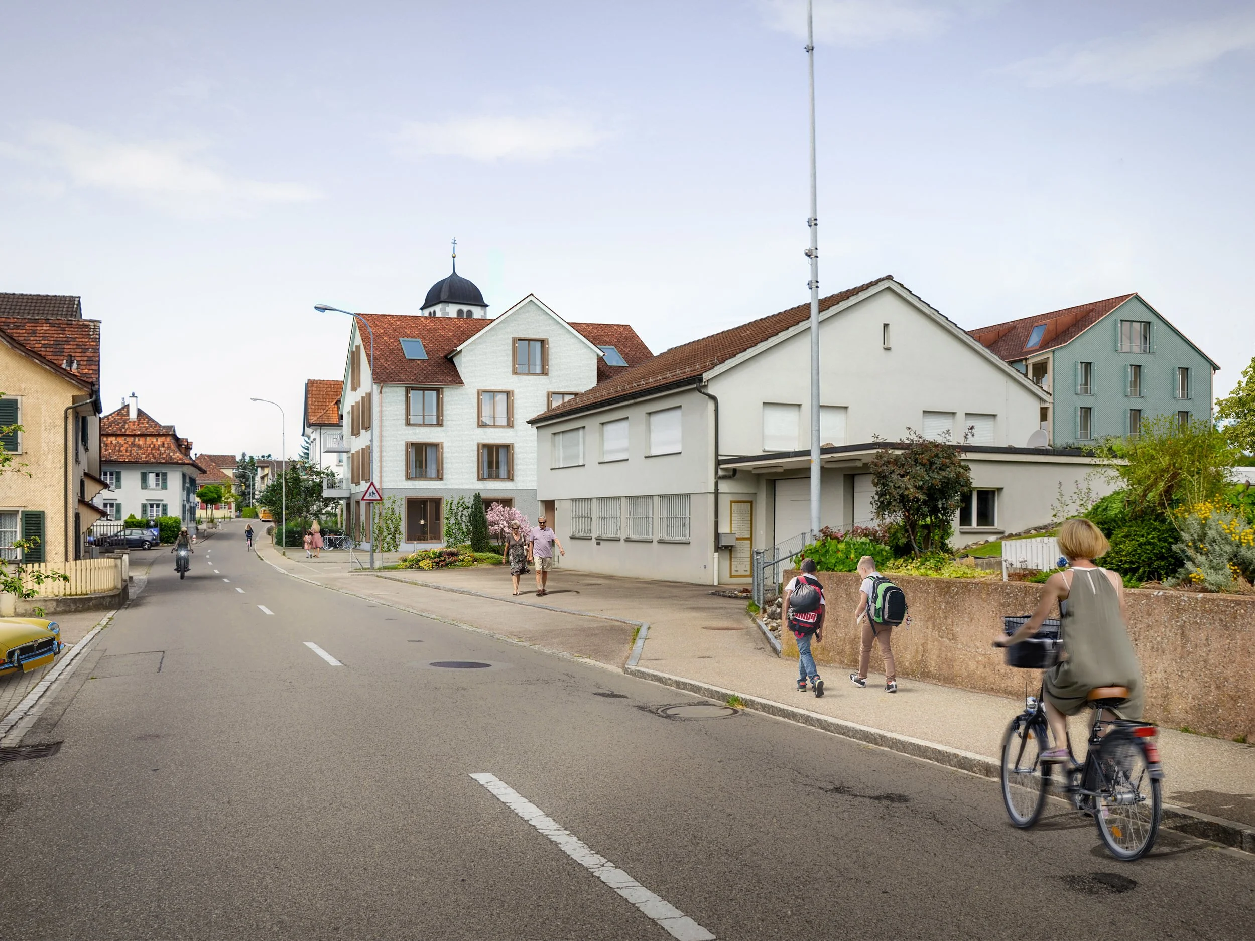 Häggenschwil präsentiert sich als kompaktes Strassendorf, eingebettet in eine von Landwirtschaft geprägte Gegend. Streuobstwiesen, Obstplantagen und Ackerflächen prägen den malerischen Ort. Das Bearbeitungsgebiet liegt im zentralen Ortskern von Häggenschwil und wird im Süden, Osten und Norden von Strassen, an der Westseite vom Pfarreiareal begrenzt. Bei der Gestaltung werden Dachform, Stellung der Bauten sowie deren Beziehung untereinander und zum öffentlichen Raum aus dem Kontext gelesen und zeitgemäss formuliert.